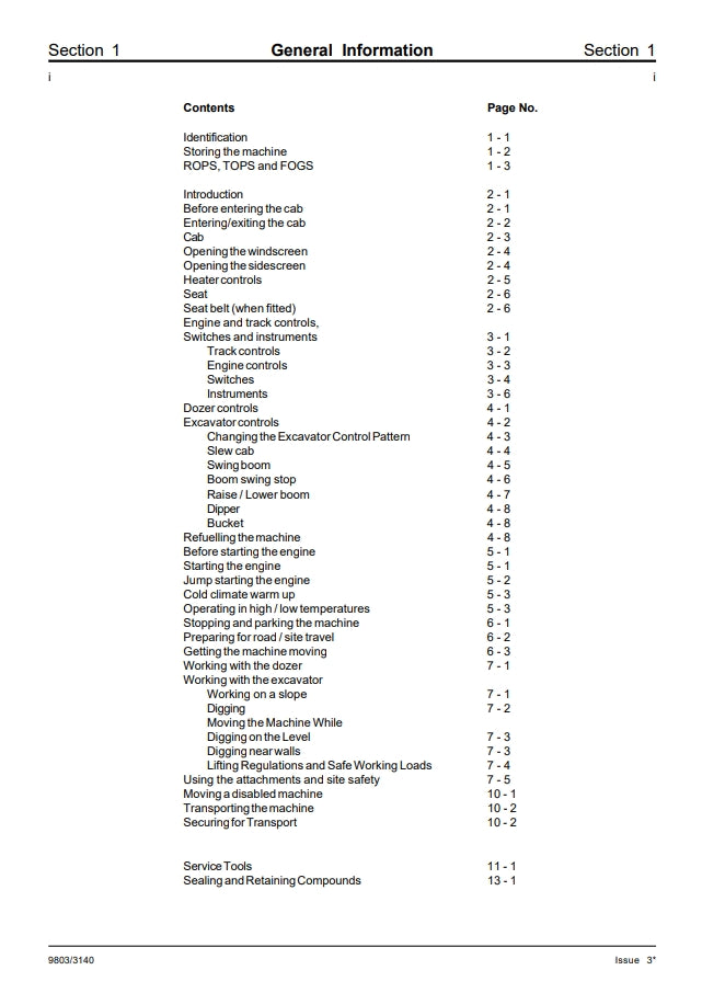 The manual is compiled in sections, the first three are numbered and contain information as follows: