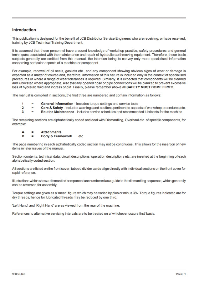 This publication is designed for the benefit of JCB Distributor Service Engineers who are receiving, or have received,