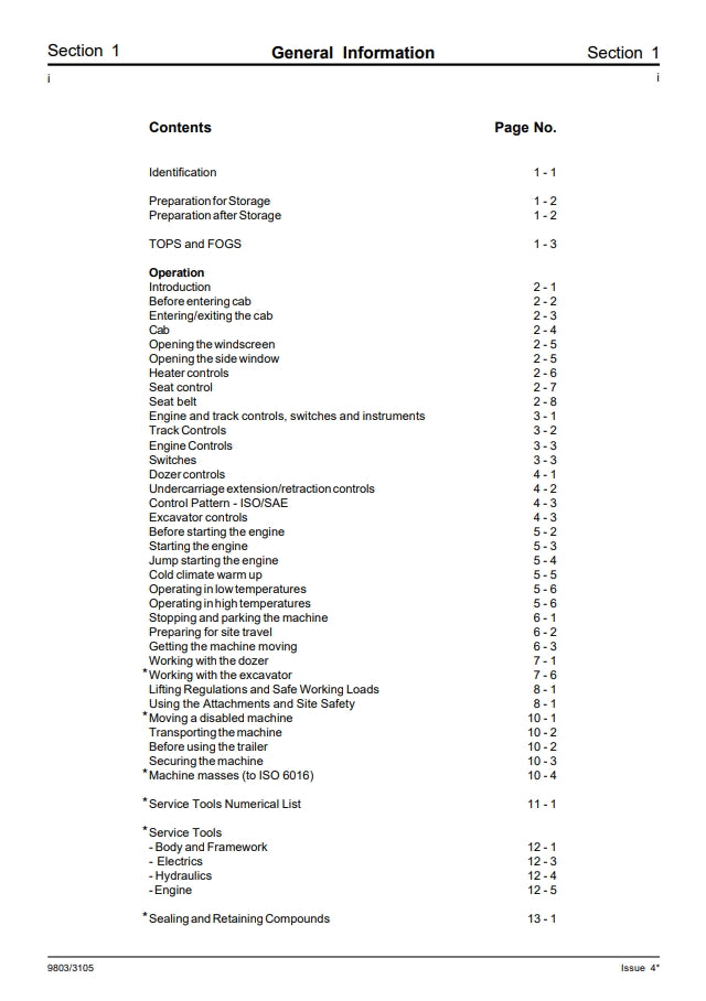 The manual is compiled in sections, the first three are numbered and contain information as follows: