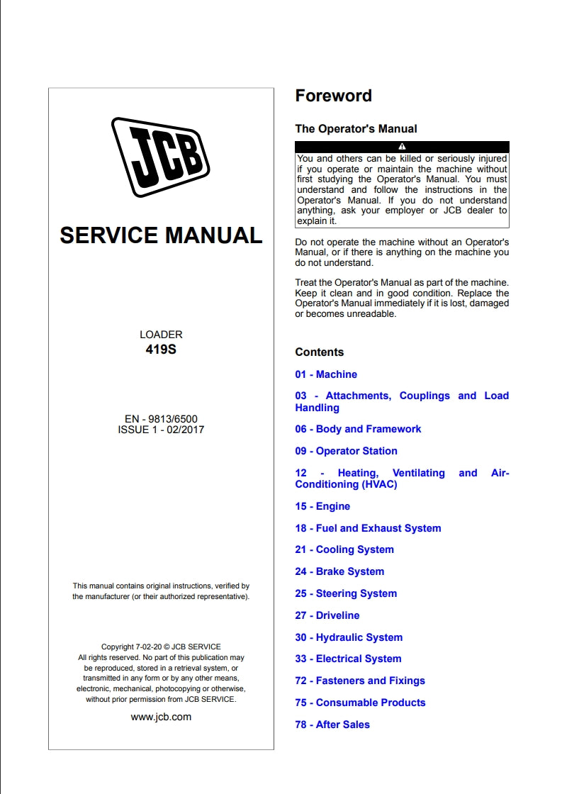 SERVICE MANUAL LOADER 419S