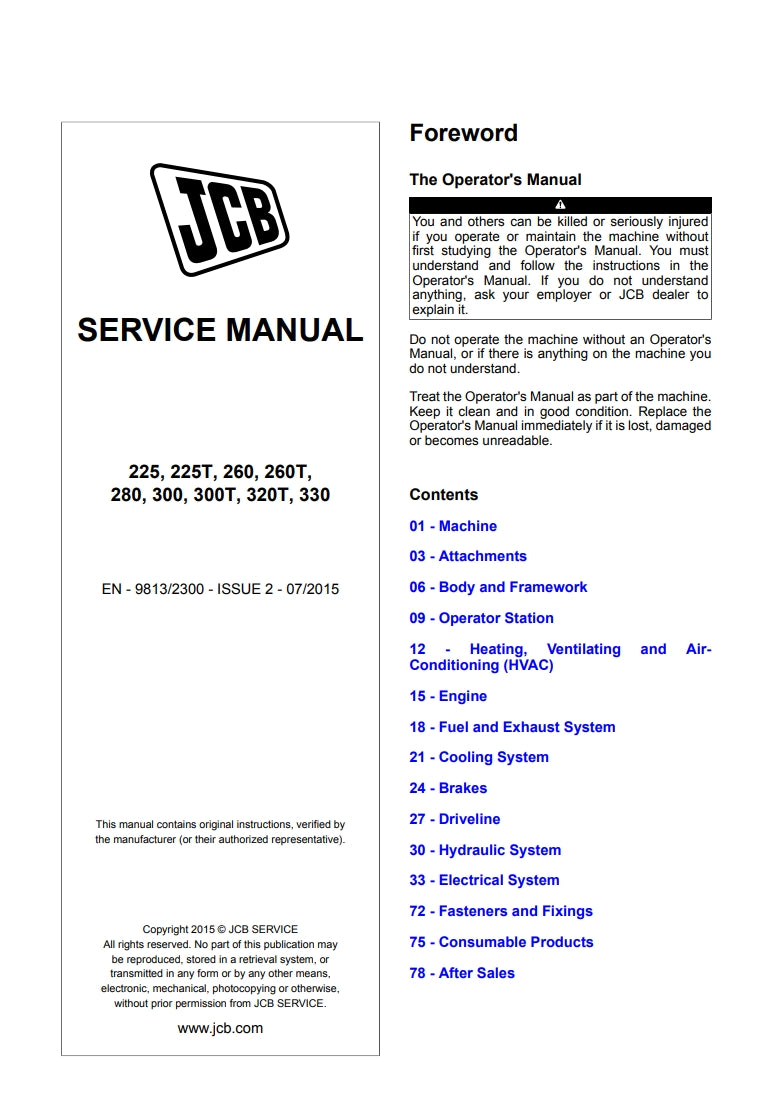 SERVICE MANUAL 225, 225T, 260, 260T, 280, 300, 300T, 320T, 330
