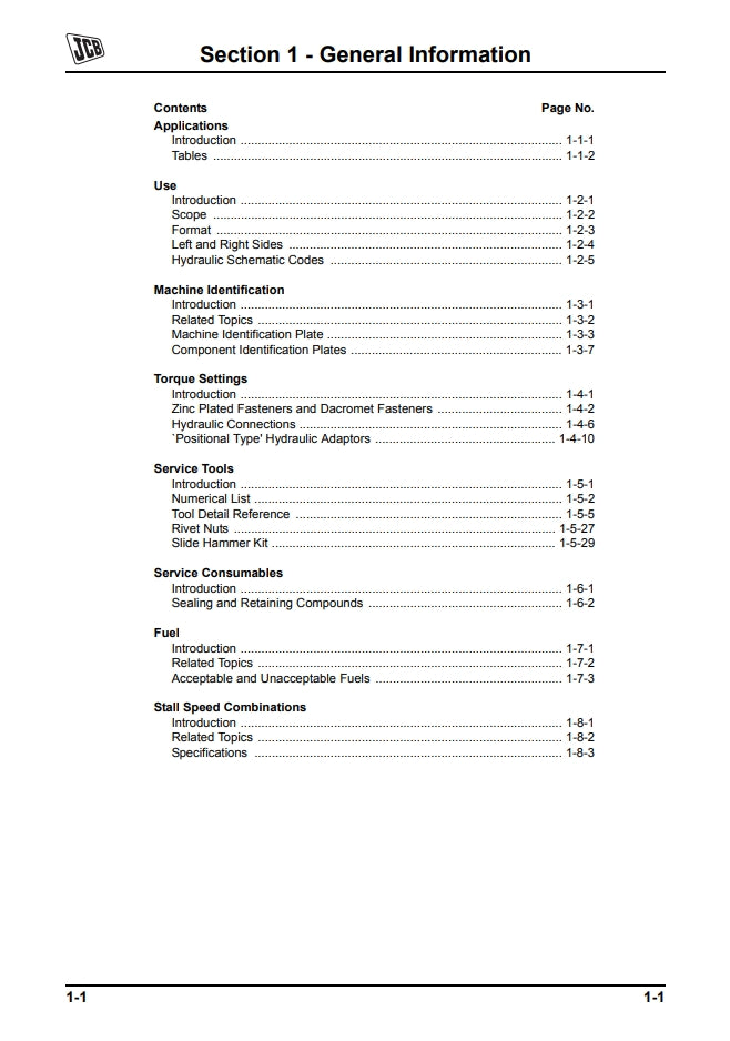 Section 1 General Information Service Manual - Side Engine Loadalls