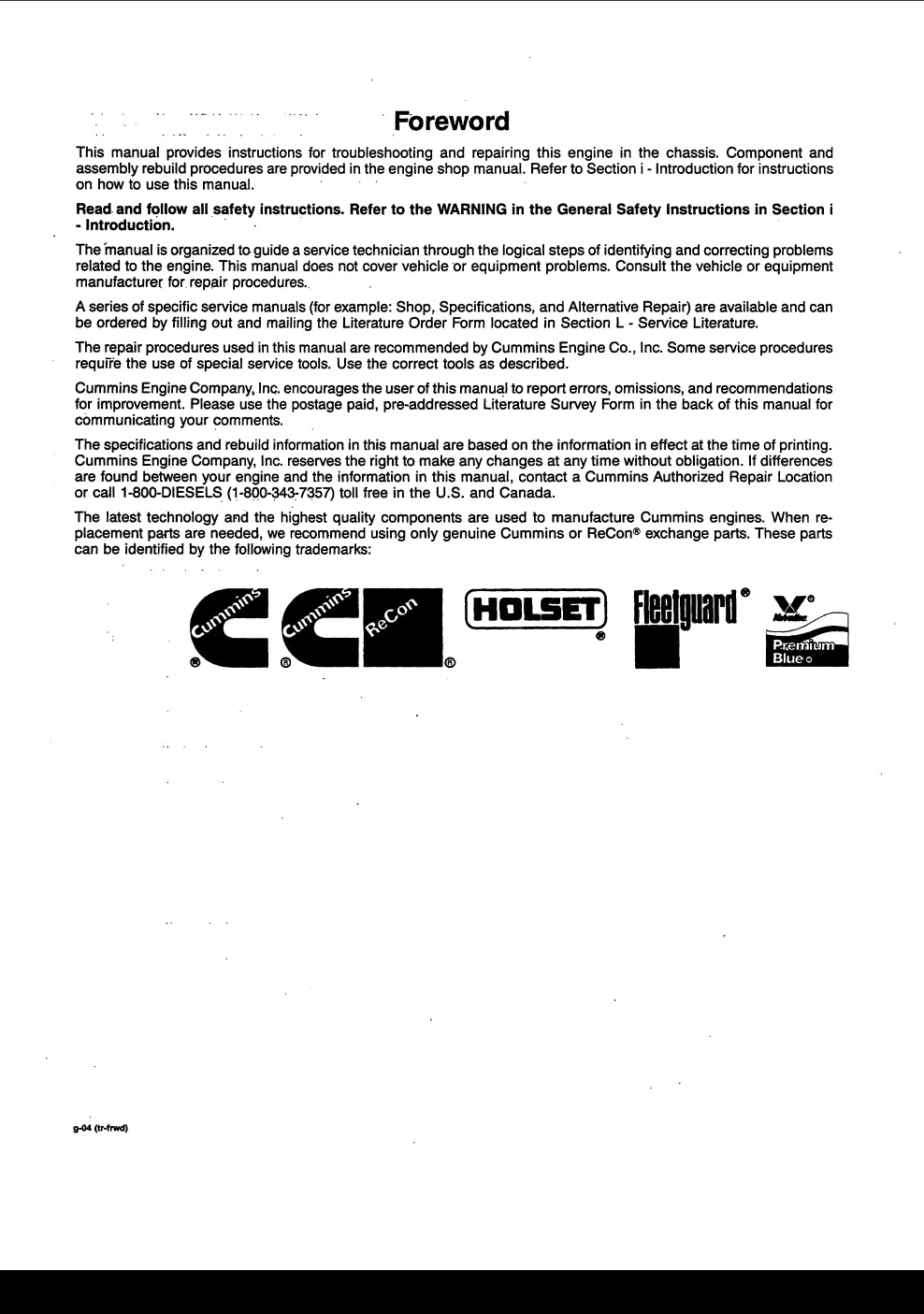 Troubleshooting and repair manual isc and QSB5.9 Engines