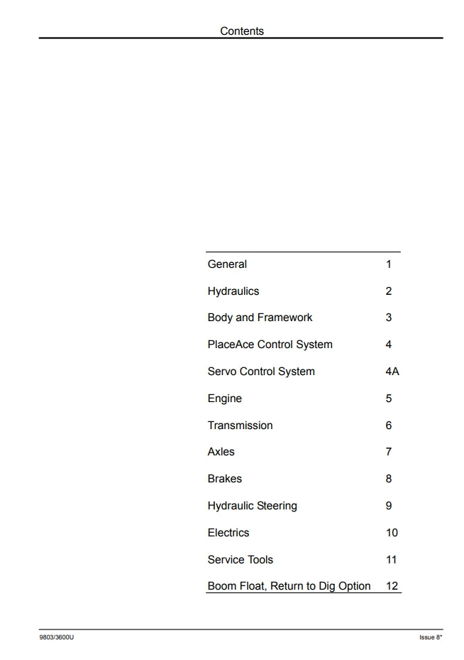 For convenience this manual is compiled in sections, e.g. "Hydraulics", "Electrics", etc. but, to find details of a specific