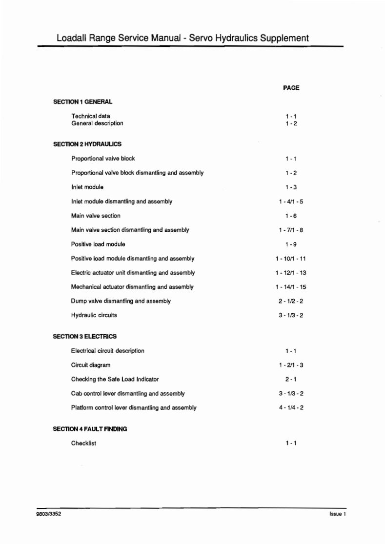 Service Manual Supplement LOADALL RANGE SERVO HYDRAULICS