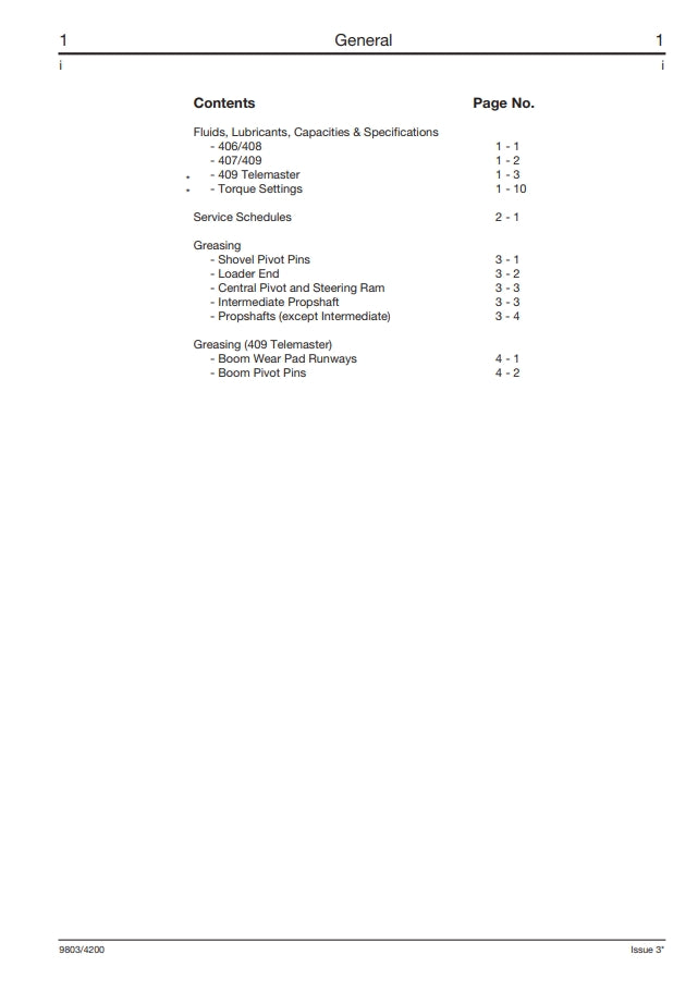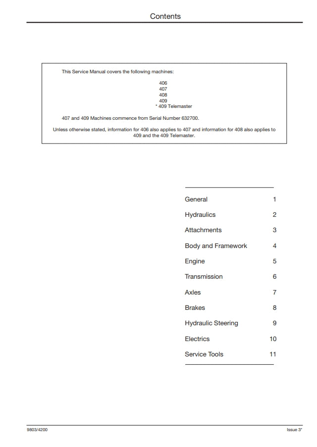 For convenience the manual is compiled in sections, e.g. "Hydraulics", "Electrics" etc., but to find details of a specific