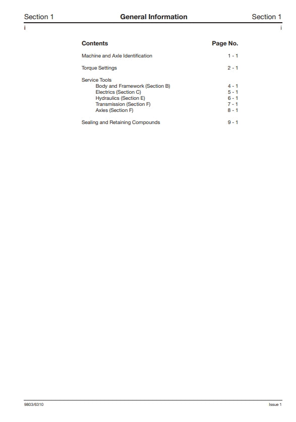 The manual is compiled in sections, the first three are numbered and contain information as follows: