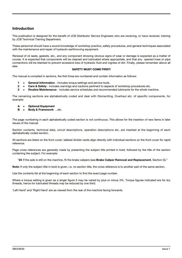 This publication is designed for the benefit of JCB Distributor Service Engineers who are receiving, or have received, training