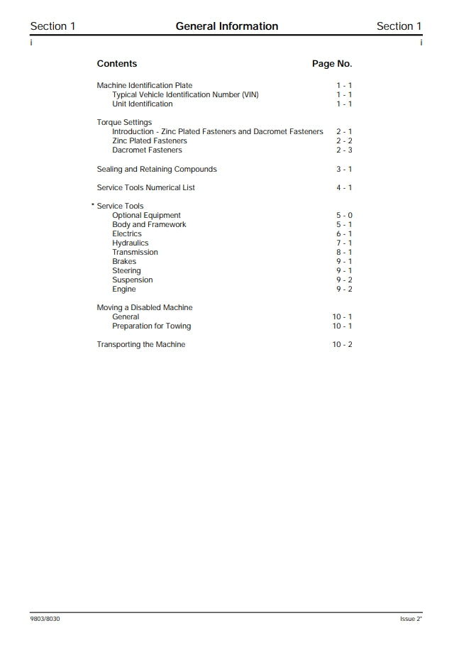 3 = Routine Maintenance - includes service schedules and recommended lubricants for the whole machine.