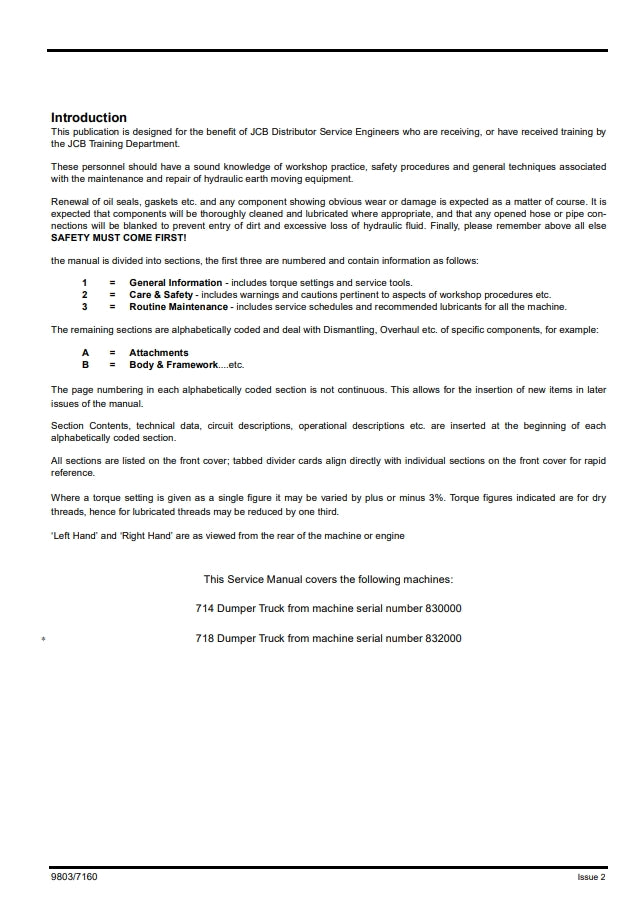 This publication is designed for the benefit of JCB Distributor Service Engineers who are receiving, or have received training by