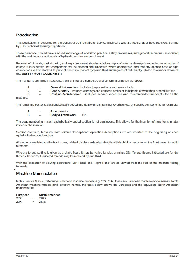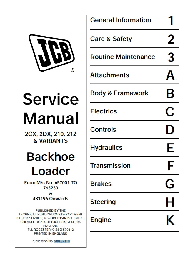 Service Manual 2CX, 2DX, 210, 212 & VARIANTS Backhoe Loader