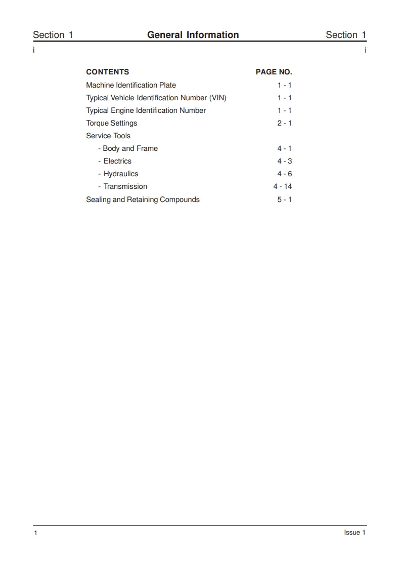 The manual is compiled in sections, the first three are numbered and contain information as follows: