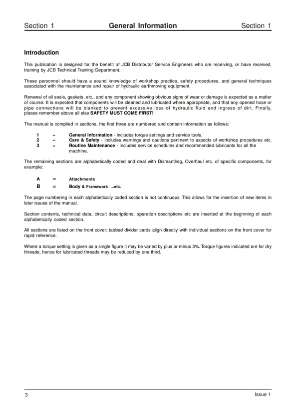 This publication is designed for the benefit of JCB Distributor Service Engineers who are receiving, or have received,