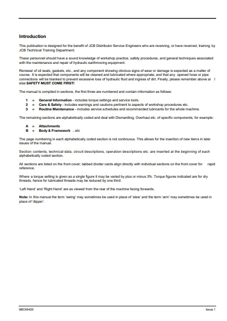 This publication is designed for the benefit of JCB Distributor Service Engineers who are receiving, or have received, training by