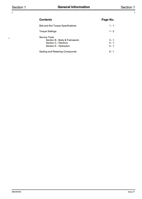 The manual is compiled in sections, the first three are numbered and contain information as follows: