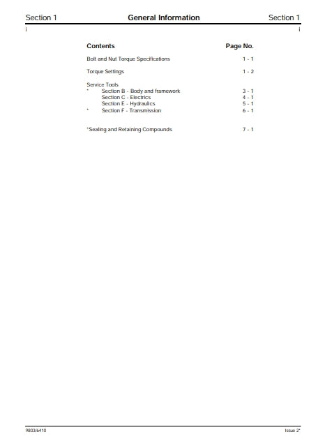 The manual is compiled in sections, the first three are numbered and contain information as follows: