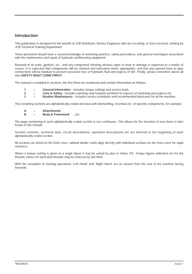 This publication is designed for the benefit of JCB Distributor Service Engineers who are receiving, or have received, training by