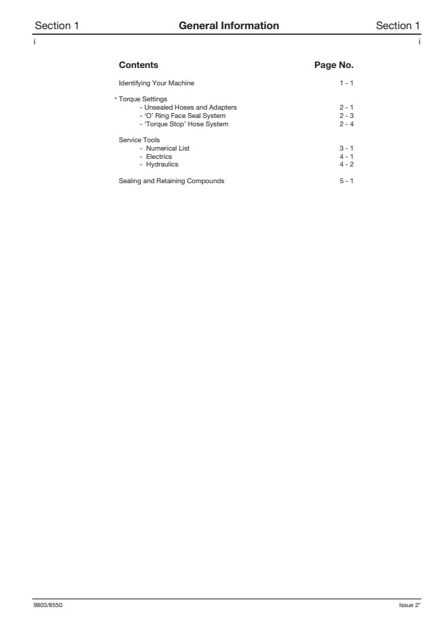 3 = Routine Maintenance - includes service schedules and recommended lubricants for all the machine.