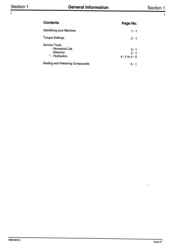 3 = Routine Maintenance - includes service schedules and recommended lubricants for all the machine.