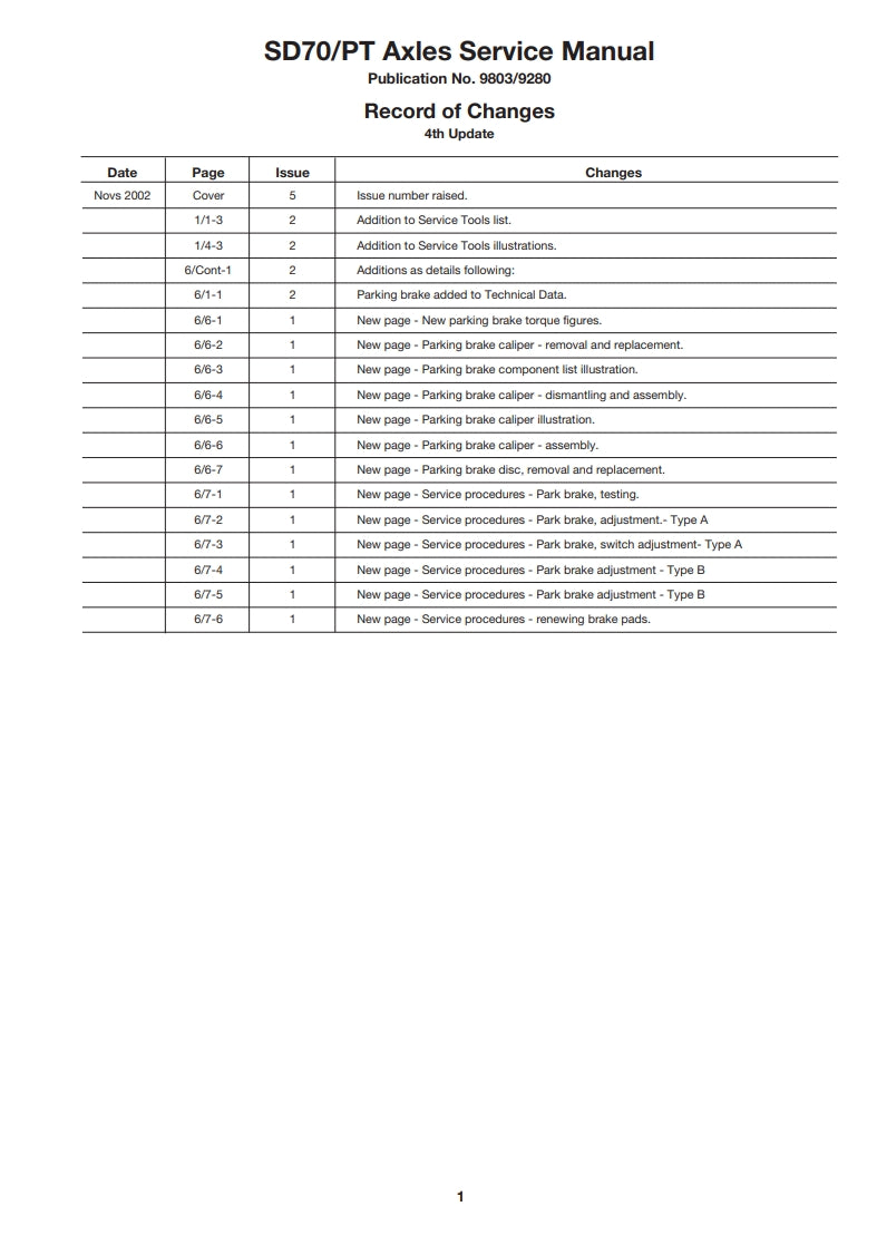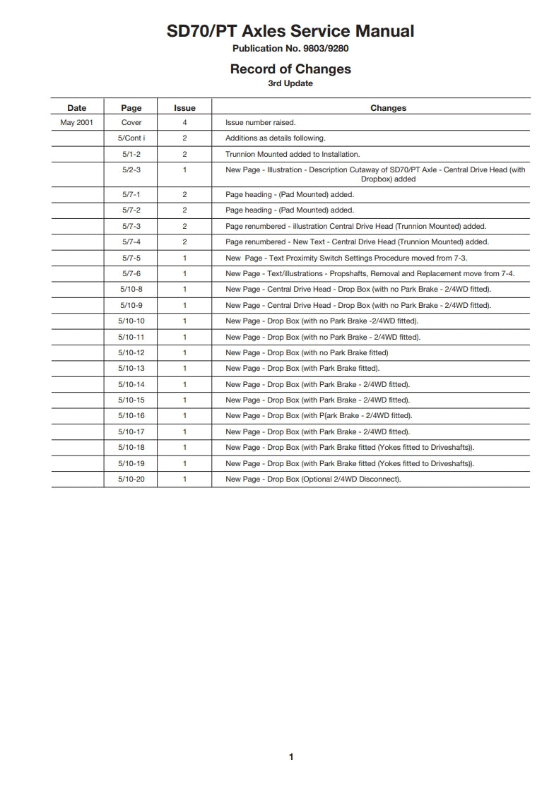Service Manual SD 70/PT AXLES CENTRAL AND OFFSET DRIVE HEAD