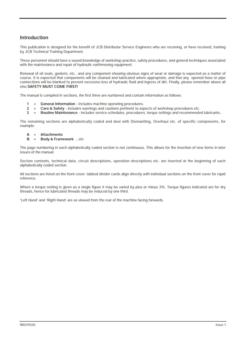This publication is designed for the benefit of JCB Distributor Service Engineers who are receiving, or have received, training