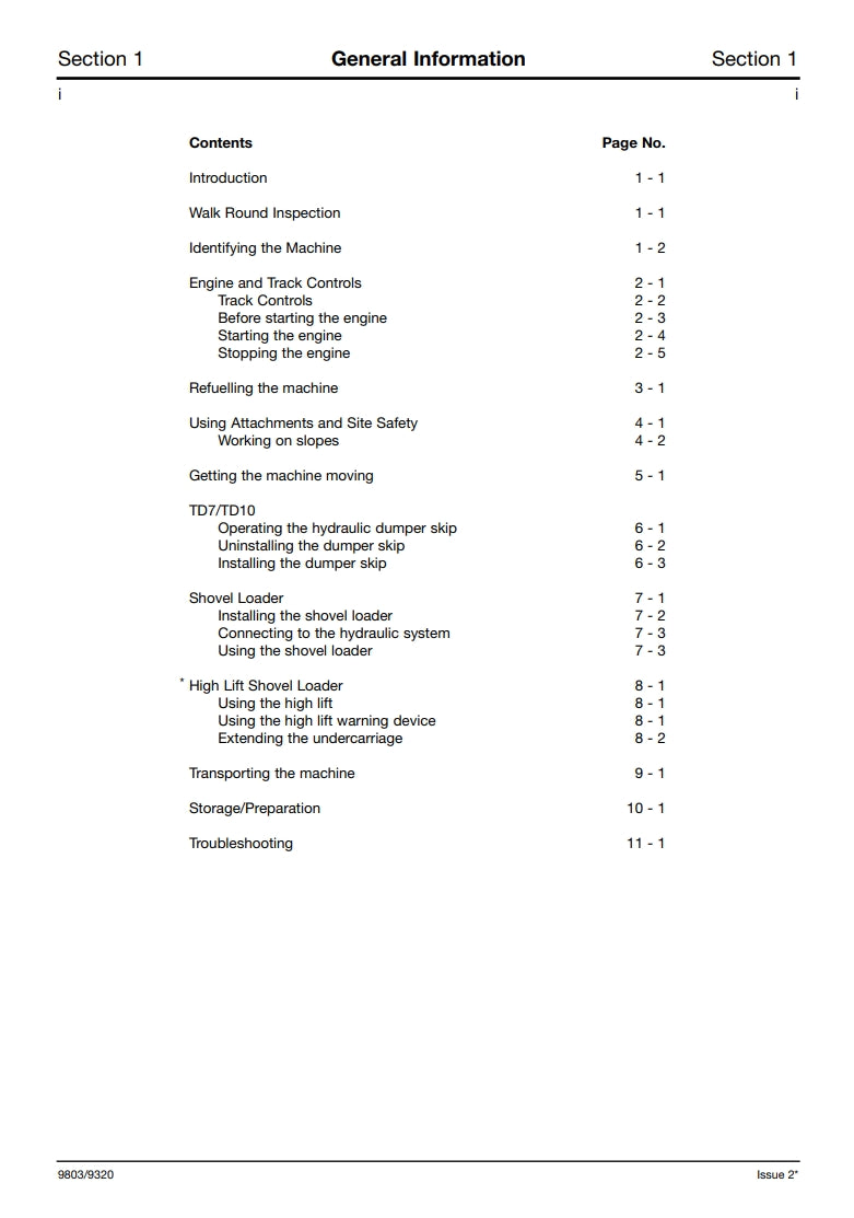The manual is compiled in sections, the first three are numbered and contain information as follows: