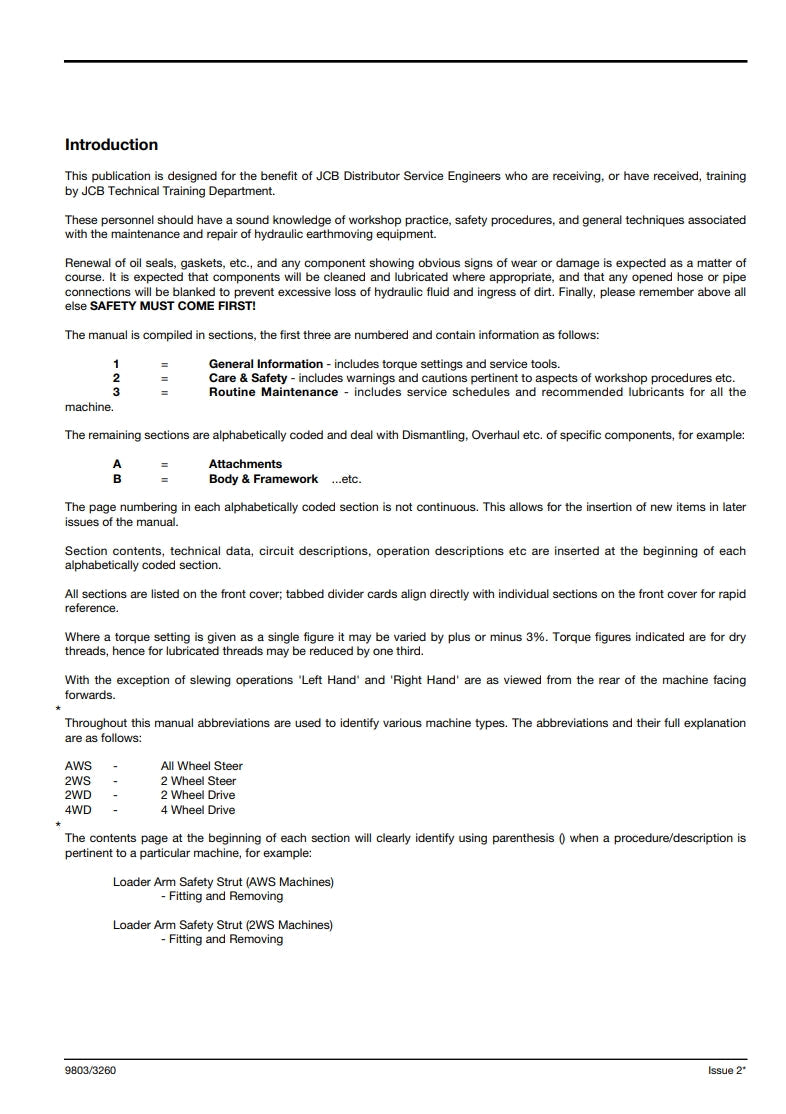 This publication is designed for the benefit of JCB Distributor Service Engineers who are receiving, or have received, training